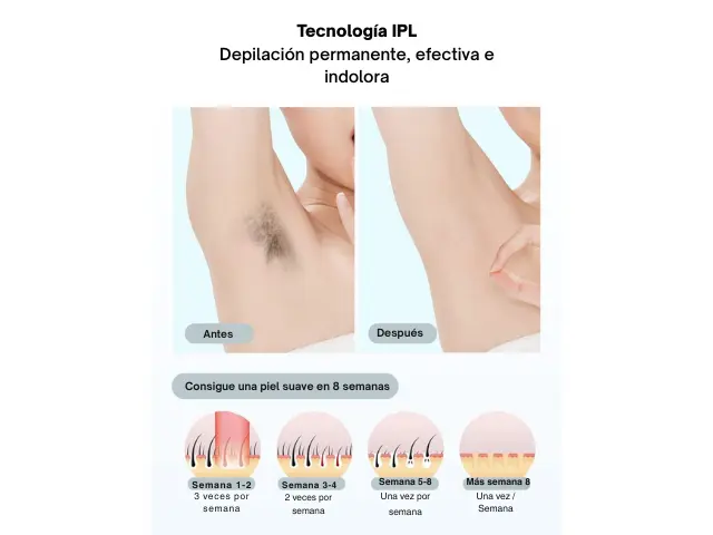 ✅ Estudios clínicos muestran que la tecnología de luz pulsada (IPL) logra hasta 90% de reducción del vello después de 8-12 semanas de uso regular.