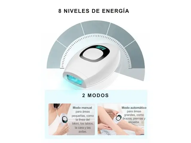 ✅ Tecnología segura y confiable, con sistema de 8 niveles ajustables según tipo de piel y sensibilidad, sin irritaciones ni cortes.
