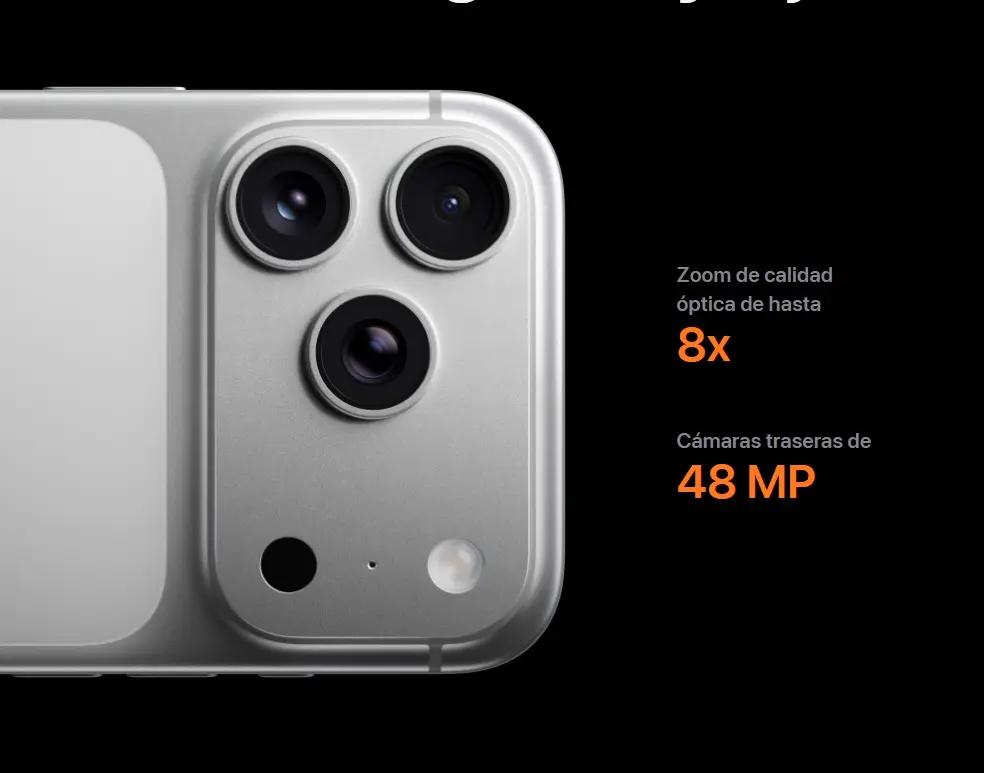 iOS 26 con Apple Intelligence integrado, funciones de fotografía/video avanzadas, interfaz refinada.