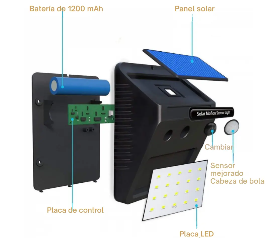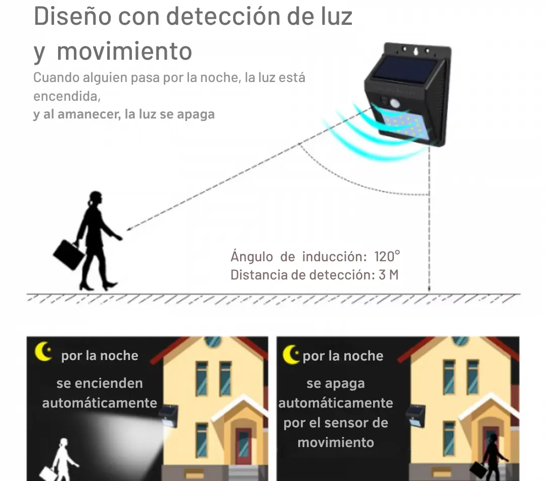 No requiere cables ni mantenimiento, se recarga automáticamente con la luz solar y ofrece una iluminación inteligente y sustentable que se activa solo cuando la necesitás.